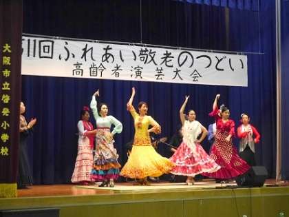 この後、幼児のお遊戯や、フラメンコ舞踊など演芸大会を鑑賞させていただきました。地域のお年寄りの方々が終始笑顔で過ごされる、素晴らしい会でした。