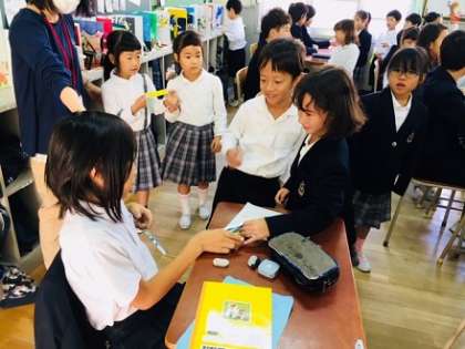 出発式では、校長先生のあいさつに続いて、先生から諸注意がありました。昨日1年生児童から6年生ひとり一人に手渡された旅の無事を祈るお守り を携え、みんな笑顔で元気に広島に出発 しました。他の学年児童や教職員が「いってらっしゃーい!」と見送ってくれました。
