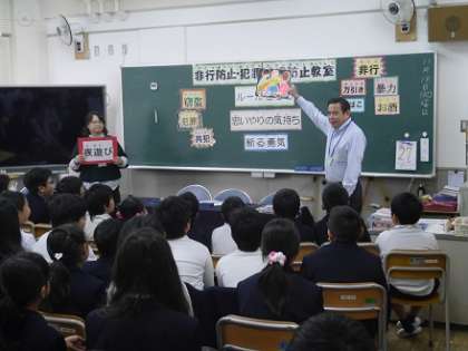 11月13日(火)、今日は寒気の影響で、肌寒い朝となりました。午前、梅田少年サポートセンターの職員をお招きし、5年生を対象に「非行防止教室」を実施しました。