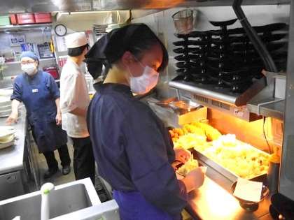 今日は第1日目で、当然のことですが生徒たちは非常に緊張しているようすです。みんな、懸命に説明と指示を聴き、仕事の手順を覚えていました。図書館では、図書の整理やパソコンを使って受付での貸出や返却の作業を行っていました。また、病院では最新の検査機器や、実際の医療現場を見学させていただきました。和食店では、多忙なランチタイムに向けて、盛り付け補助や食器の準備を黙々とおこなっていました。ほかの事業所でも、たいへん貴重な体験をさせていただきました。