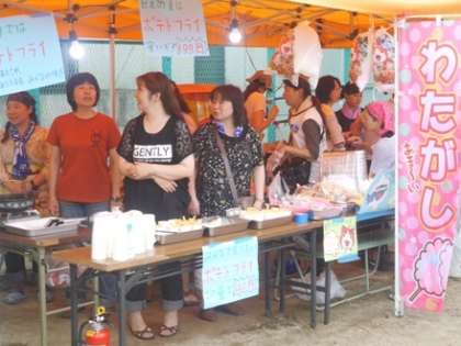 啓発小学校と中島中学校が、昨年から出店している「フライドポテト」と「景品付き、まとあてゲーム」に加え、「手づくりパンや、わたがし」もありました。PTA実行委員の皆さんと教職員が協力して模擬店を運営したり、久しぶりに会う子ども達に声かけをし、賑わいを見せていました。