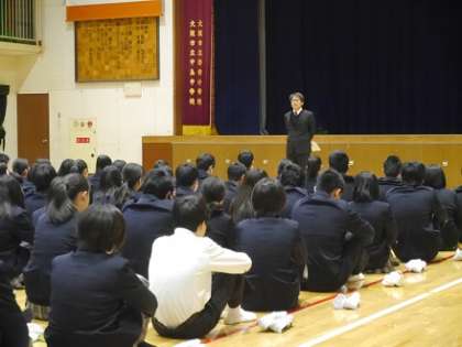 1月21日(月)、土日の雨はあがり快晴となりましたが、とても寒い朝となりました。体育館では7〜9年生の生徒集会が行われました。校長先生からの講話では、実際に体験された阪神淡路大震災に触れ、過去の災害を忘れず教訓として、防災意識を高めましょう、と結ばれました。
