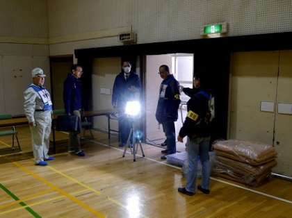 訓練は、災害発生を想定した、本番さながらの緊張感のあるものでした。管理部、総務部、救護部など担当ごとに分かれ、テントの設営や救護室、対策本部の開設、発電機などの確認、また、負傷者、避難者への対応準備を手際よくすすめておられました。同時に課題もいくつか見つかり、より減災につなげるものとなりました。