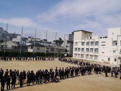 3月14日(木)、今日は快晴となりましたが、冬を思い出させるような寒い朝となりました。午前10時から、小中一貫校「むくのき学園」大阪市立中島中学校 「第68回卒業証書授与式」を挙行いたしました。