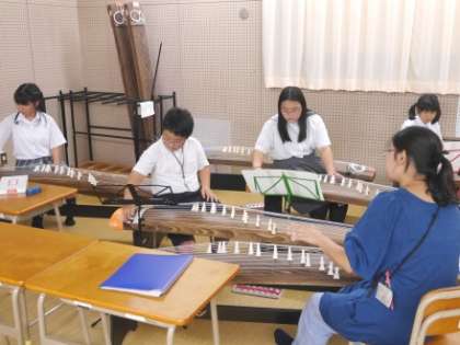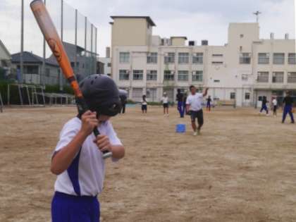 野球部【写真左・中】は中学生の部員数が少ない部ですが、今日は多くの児童が教室に集まり、9月の目標を立てて、練習を行っていました。音楽部【写真右】は新しく2名の児童が入部し、早速、活動をしていました。