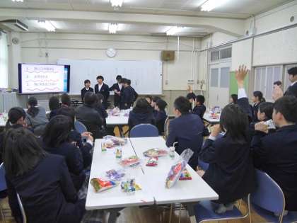 3月19日(火)、早朝からの雨は止み、春を感じさせる朝となりました。3・4限、6年生は小学校生活最後のお楽しみとなる「茶話会」を視聴覚室で行いました。飲み物やお菓子とともに、ゲーム、クイズなどをして楽しみました。非常に盛り上がり、笑いが絶えない時間を過ごしました。