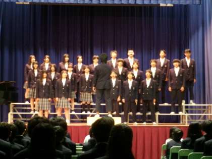 第2部の合唱コンクールでは、中期区分5〜7年生と後期区分8〜9年に分かれ、それぞれ金賞をめざして発表しました。