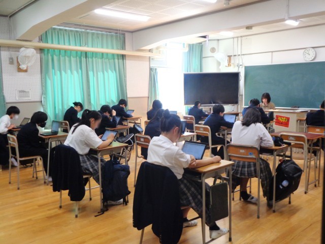 9年生の学年フロアは静まり返り、みんな真剣に調査に臨んでいました。