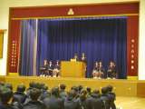 今夜の宿舎はきれいなホテルです。フロント前では、児童代表の進行で開舎式を行いま...