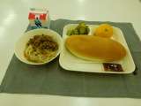 本日の給食 ・タンタンめん ・きゅうりの甘酢づけ ・みかん ・いちごジャム ・パ...