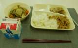 本日の給食 ・豚肉のねぎじょうゆ焼き ・ふきよせ煮 ・ツナ大豆そぼろ ・ごはん ...