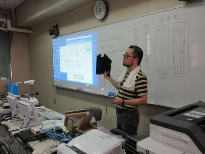 終業式終了後、早速若手の先生方が中心に、タブレットやプロジェクターなどの情報機器をいかに授業で有効に使っていくかの勉強会を実施しました。ICT担当の白石先生を中心に書画カメラや授業用パソコンと連動した使用方法など積極的な授業での活用を目指した研修会です。若手に交じってベテランの先生も参加して有意義な時間となりました。夏休み中、授業の無い時間を使って先生方も、研修や教材研究に励んでいきます。
