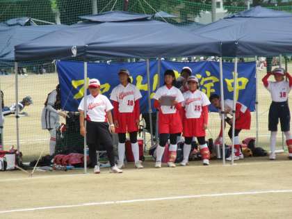 ソフトボール部:大阪府大会5回戦8−1でコールド勝ちです。これで5試合すべてコールド勝ちで準々決勝進出です。準々決勝は、午後2時30分より久宝寺緑地公園で行われます。