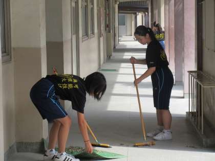 バレー部:今日は、井高野中学校と練習試合です。練習前には校舎の掃除をしてくれています。