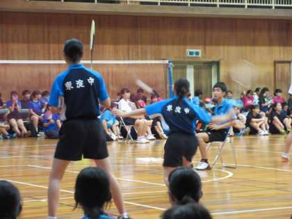 バドミントン部:美津島中学校にて、4B大会団体リーグ戦が行われています。3年生にとっては最後の大会ですが、残念ながらリーグ戦で敗退してしまいました。気を取り直して、次は個人戦、がんばれ!。