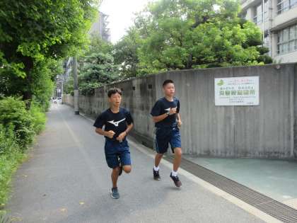 陸上部:午前中の練習です。ブロック大会は男女とも4Bで16校中6位でした。