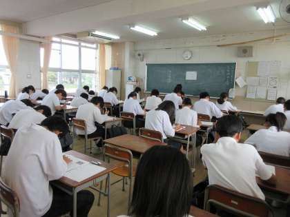 本日10月3日は、3年生の統一テストです。5教科を5時間目まで受験して下校します。1,2年生も金曜日の時間割ですので5時間目終了後、下校します。