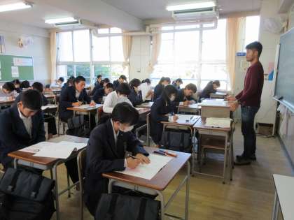 1時間目3年生は英検IBAに挑戦中です。いよいよ本格的に受験モードになってきました。写真はリスニングテストの様子です。
