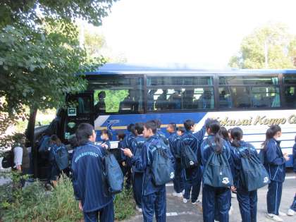 午前9時に予定通り4台のバスに分乗して出発しました。淡路島公園には10時15分ごろ到着予定です。このあと現地より活動の様子がアップされる予定です。