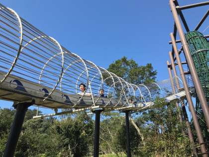 巨大な滑り台を滑っている様子です。