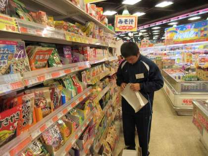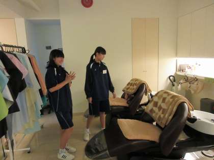 初日の午前中、みんな緊張した面持ちで活動開始。写真は保育園、美容室、スーパーでの様子です。