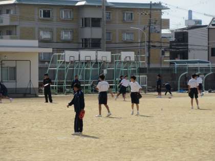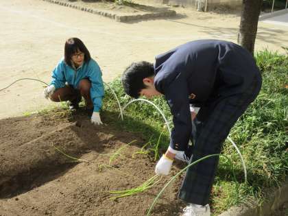 特別支援学級の5名が信太山青少年の家で行われるふれあいステイに9時30分元気に出発しました。写真は特別支援学級での栽培活動、1年生理科実験、2年生体育の様子です。