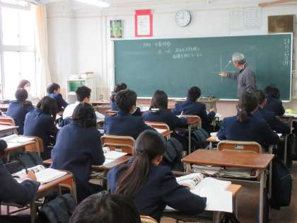 *午前10時現在で1年生で新たなインフルエンザの広がりは1名です。終息に向かいつつあるので本日は通常授業とし、午後からも授業を行います。明日も平常通りの授業を実施します。写真は1年生数学科、社会科、英語科の授業の様子です。