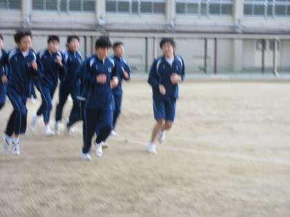 持久走の季節がやってきました。かぜに負けない強い体を作っていきます。クラブを引退して体力を持て余している3年生もいるかもしれません。受験に備えてスタミナづくりを!写真は1年女子と3年男子の持久走の様子です。