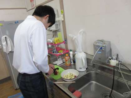 全学年45分×4時間の午前中授業で、午後からは懇談中です。3年生の進路懇談は今日で終了、1,2年生は23日まで期末懇談は続きます。今学期の給食は終了しました。写真は特別支援学級「大学いも」づくりの様子です。自分たちで栽培したサツマイモを使いました。もう1枚は3年生の数学の授業の様子です。学校力アップコラボレーターの道川先生が見守ってくれています。
