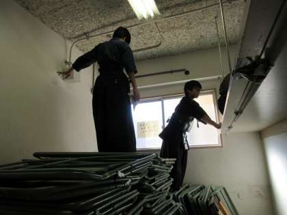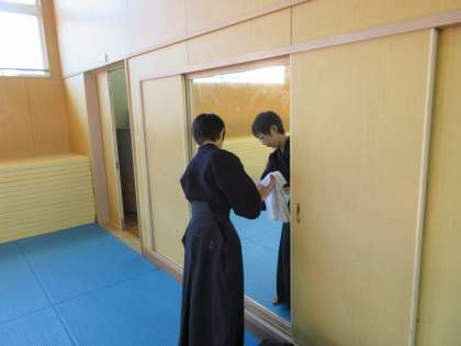 剣道部は、武道場にて朝稽古をしっかりと行いました。練習後、感謝の気持ちを込めて武道場の掃除をしています。
