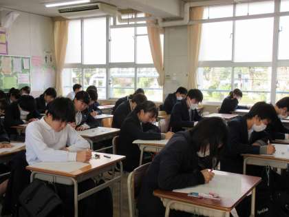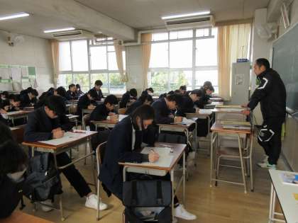 3時間目4組、2組の英語のテストの様子です。回数を重ねるごとに、横顔が真剣そのものになってきます。この後、給食無しで下校します。明日に備えましょう。