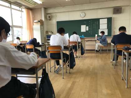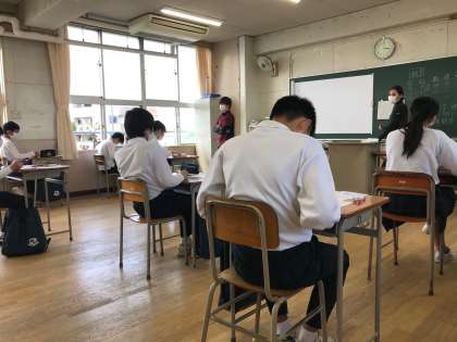 どのクラスでも、真剣に課題と向き合う姿が見られます。声をかけると「もう、3年生やねんから、頑張らないと!」と、どの生徒からも返事が返ってきます。この休校措置で、危機感を抱いている様子がわかります。学校としても、全力でみなさんの学習のサポートをしていきます。