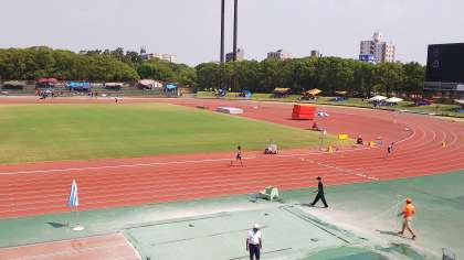 炎天下、本来なら6月に行われる予定だった陸上部春季総体の代替大会(無観客試合)が、ヤンマーフィールド長居で行われています。