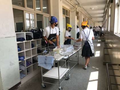 新型コロナウイルス感染症予防のため、向かい合っておしゃべりしながら、というわけにはいきませんが、久しぶりにクラスのみんなと食べる給食はきっとおいしかったでしょうね。