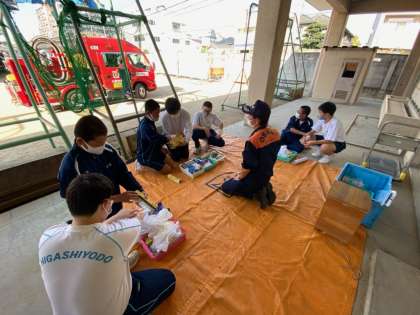 写真はそれぞれ、自衛隊大阪地方協力本部、大阪市東淀川消防署、株式会社森長工務店にお世話になったグループです。