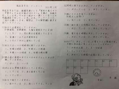 風紀委員会で遅刻を減らす取り組みの一環としてアンケートを実施しました。
