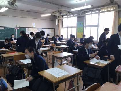 写真上は2年4組です。テストが返却されている真っ最中。納得のいく結果だったでしょうか。