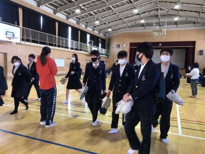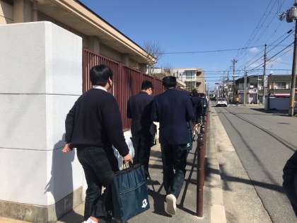 出願する高校ごとに、まとまって学校を出発します。気をつけて、行ってらっしゃい!