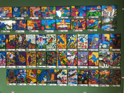 昨年度の2年生の作品が展示されていますが、どれも見事な力作揃いですよ。