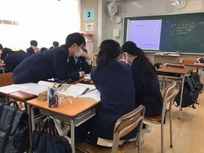 2年3組、4限社会の授業は「武家諸法度」について考えます。この制度がなぜ設けられたのかを班で話し合います。