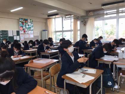 1・2年生は2限でテストが終わり、下校します。テストは明日も続きます。家庭学習を怠らないようにしましょう。