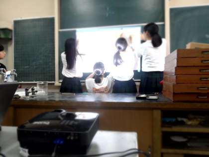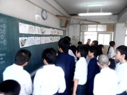 クラスで1つ選んだ絵柄を布に大きく転写して色を塗ります。