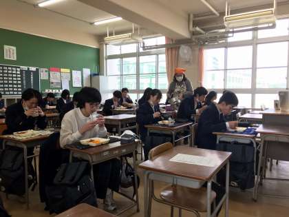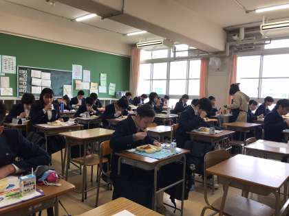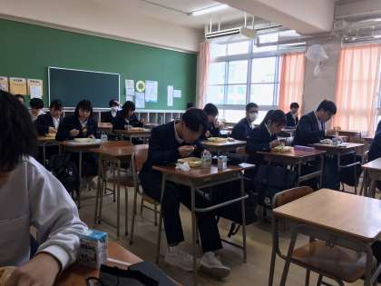 黙食もすっかり習慣化しました。みんな、感染に気をつけて給食を食べています。