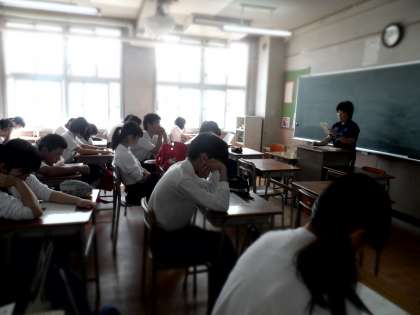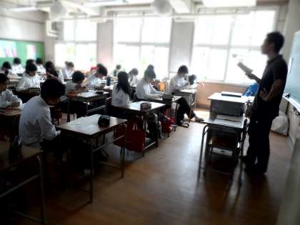 ローテーションを組んで5クラスを順に廻って授業をします。