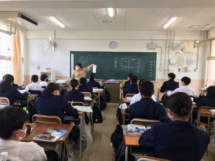 今日から授業がスタートします。1年生にとっては、中学校で受ける初めての授業です。教科ごとに変わる担当の先生にドキドキしながら、説明を受けます。ちょっと緊張してるかな?