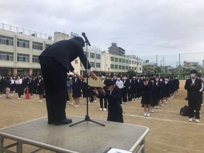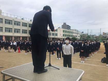 今朝の集会で、野球部と陸上部に賞状が伝達されました。今後の活躍に期待しています!