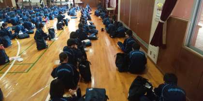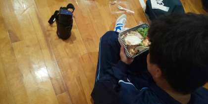 体育館での昼食です。