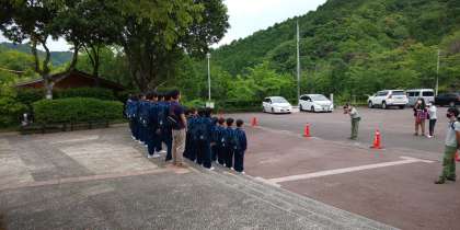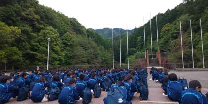 山に向かって班で出発しました。