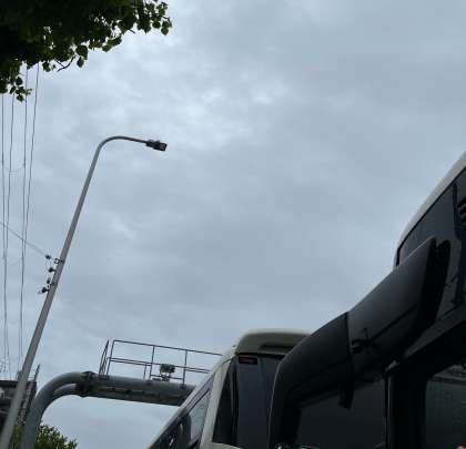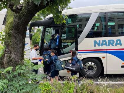 バス乗車前には、感染症防止対策として、手指消毒をしてから、バスに乗り込んでいます。