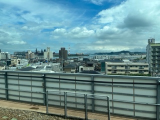 10時30分に小倉駅到着です。あと、15分ほどで博多駅到着で、新幹線を下車します。車窓から見える景色から判断すると、雨は降っていません。傘なしで、活動できそうです!!